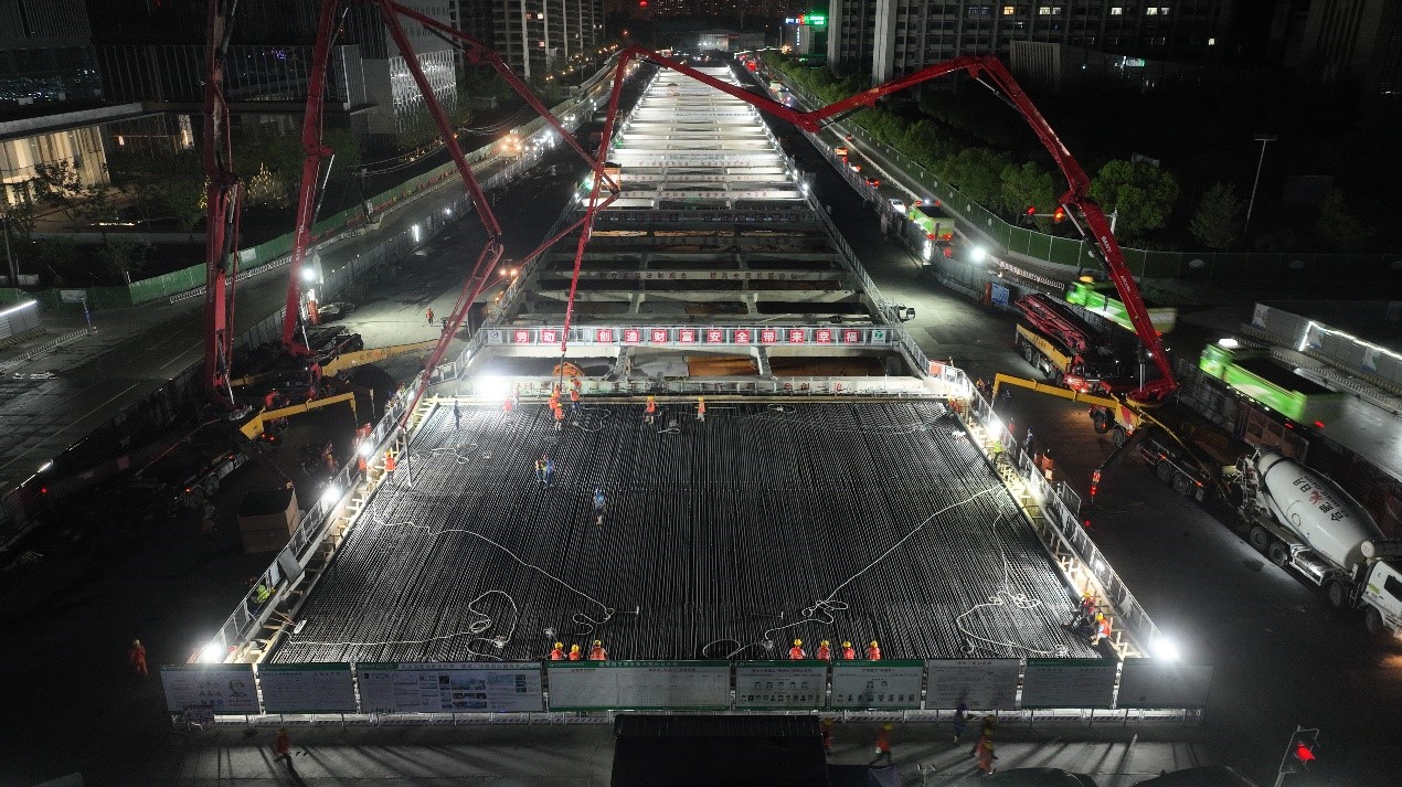 截止目前,宿松路主线下穿地道累计完成32个节段底板(占比86%)、16个节段顶板(占比40%)施工,剩余主体结构同步正在稳步推进。本次导改完成后,将开展剩余的5个暗埋段主体施工,也预示着宿松路主线下穿地道正式进入冲刺阶段。
